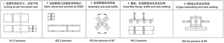 নিম্নলিখিতটি প্লেট থেকে এইচ বিম এবং চূড়ান্ত পরিদর্শন পর্যন্ত উত্পাদনের জন্য উত্পাদন প্রবাহ চার্ট রয়েছে।